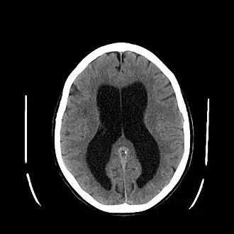 El tratamiento implica monitorizar la presión intracraneal (la presión dentro del cráneo), drenar el fluido desde los ventrículos cerebrales, y, si está presente un hematoma intracraneal, drenar la sangre acumulada.[14]