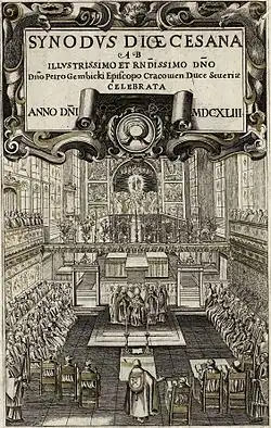 En 1215, el IV Concilio de Letrán recomendó la celebración anual de concilios (o sínodos) bajo la autoridad de los arzobispos.[7] También se puede convocar un sínodo sobre algún punto en particular. Aunque la institución sinodal se ha perpetuado sin interrupción a lo largo de los siglos, su implementación ha sido muy variable. Dentro de la Iglesia latina, los sínodos diocesanos son convocados por el obispo en su diócesis. En el derecho canónico actual, el sínodo diocesano se organiza según las modalidades del Código de Derecho Canónico de 1983: