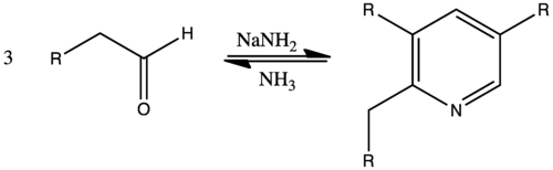 - ↑ Farley, C.; Eliel, E. (1956). «Chichibabin Reactions with Phenylacetaldehyde. II». Journal of the American Chemical Society 78 (14): 3477-3484. doi:10.1021/ja01595a057.