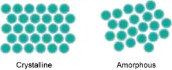 La principal diferencia entre un sólido cristalino y un sólido amorfo es su estructura. En un sólido cristalino existe un orden de los átomos a largo alcance, mientras que en los sólidos amorfos no se puede predecir donde se encontrará el próximo átomo. En este hecho se basan los diferentes métodos de diferenciación entre ambos tipos de sólido, que en algunos casos no es fácil de establecer a simple vista. Dichos métodos de diferenciación incluyen: