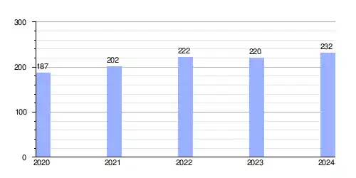 | Gráfica de evolución demográfica de Sóstófalva entre 2020 y 2024 |