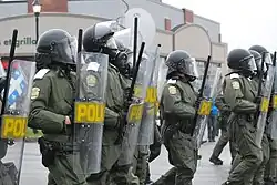 - ↑ «L'émeute de Victoriaville a coûté 218 000 $ à la SQ». Radio-Canada (en francés). 15 de octubre de 2014. Consultado el 30 de marzo de 2020.