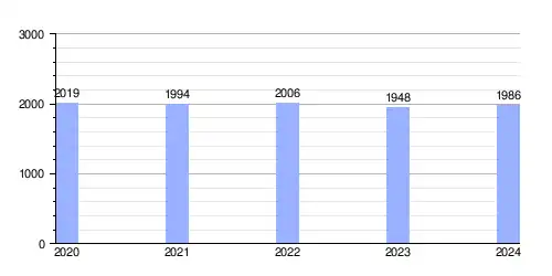Hasta 2024 la población era de 1986 habitantes,[2] con una densidad de población de 57,63 hab/km².[2]