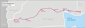 El Tren Patagónico es un servicio ferroviario de larga distancia que recorre los paisajes de la meseta del sur de la provincia argentina de Río Negro.