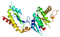 - ↑ «Nucleotide-dependent binding of the GTPase domain of the signal recognition particle receptor beta-subunit to the alpha-subunit». J Biol Chem 275 (35): 27439-46. Oct 2000. PMID 10859309. doi:10.1074/jbc.M003215200.