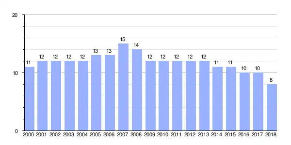 | Gráfica de evolución demográfica de Saamil entre 2000 y 2018 |