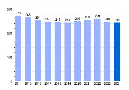 | Gráfica de evolución demográfica de Sabariego entre 2014 y 2024 |