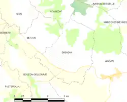 Sabazan es una población y comuna francesa, ubicada en la región de Mediodía-Pirineos, departamento de Gers, en el distrito de Mirande y cantón de Aignan.
