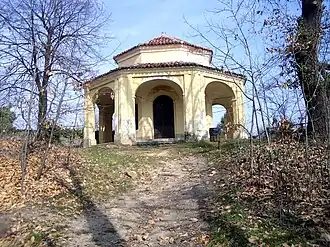 El conjunto monumental está formado por un santuario, en torno al cual, se desarrolla un recorrido circular de devoción, salpicado por trece capillas dedicadas a los Misterios del Rosario. La línea es neta, esencial, formando un anillo que parte del santuario y lo rodea. Todas las capillas tienen la misma estructura, una nave de planta distinta y ábside poligonal, con un pórtico en el que aparece la visión de la escena sagrada. Las capillas albergan estatuas y frescos con las escenas de la Pasión de Cristo. Obra de autores desconocidos, aunque trabajaban en los talleres de trabajo en terracota de Castellamonte, las estatuas, hoy sin embargo en mal estado de conservación, ofrecen un ejemplo interesante del lenguaje simple y popular en el cual el arte sagrado del siglo XVIII se desarrolla lejos de los principales centros artísticos. El lenguaje es más plástico que pictórico, las estatuas son sencillas y populares, con gestos vivos y conmovedores. Sólo se conserva una parte de las estatuas originales del siglo XVIII en terracota de Castellamonte, las demás o están muy deterioradas o han sido sustituidas por otras más recientes en escayola.