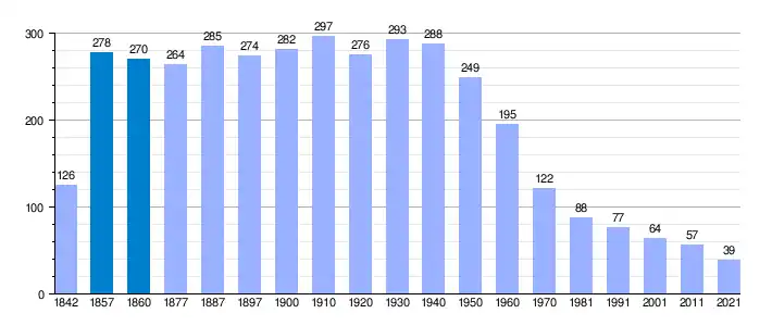 | Gráfica de evolución demográfica de Saelices de la Sal[3] entre 1842 y 2021 |