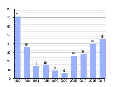 | Gráfica de evolución demográfica de Sagüés entre 1800 y 2018 |