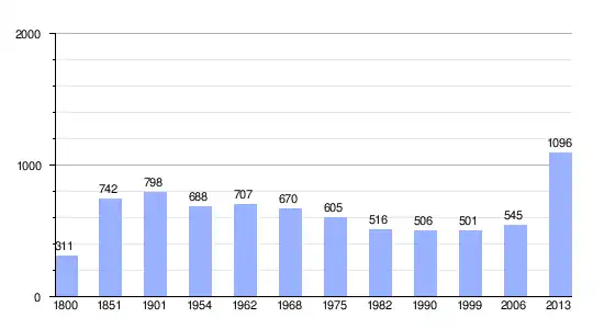 Los datos demográficos contemplados en este gráfico de la comuna de Saint-Clémentin[4] se han cogido de 1800 a 1999 de la página francesa EHESS/Cassini, y los demás datos de la página del INSEE.[5]