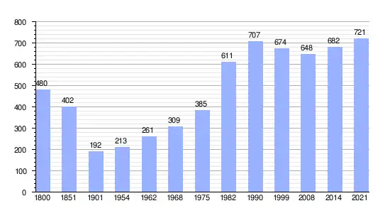 Los datos demográficos contemplados en este gráfico de la comuna de Saint-Cyr-du-Ronceray[5] se han cogido de 1800 a 1999 de la página francesa EHESS/Cassini, y los demás datos de la página del INSEE.[6]