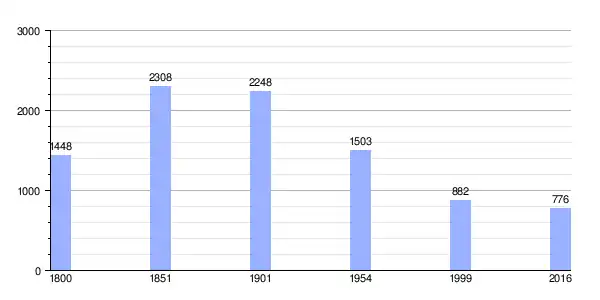 Los datos demográficos contemplados en este gráfico de la comuna de Saint-Dizier-Leyrenne se han cogido de 1800 a 1999 de la página francesa EHESS/Cassini,[8] y los demás datos de la página del INSEE.[9]