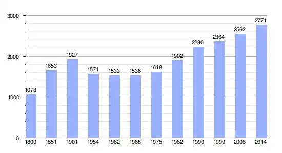 Los datos demográficos contemplados en este gráfico de la comuna de Saint-Florent-des-Bois[4] se han cogido de 1800 a 1999 de la página francesa EHESS/Cassini, y los demás datos de la página del INSEE.[5]