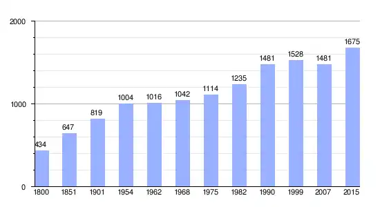 Los datos demográficos contemplados en este gráfico de la comuna de Saint-Germain-Village[4] se han cogido de 1800 a 1999 de la página francesa EHESS/Cassini, y los demás datos de la página del INSEE.[5]