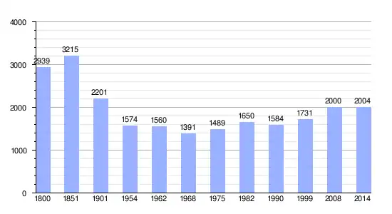 Los datos demográficos contemplados en este gráfico de la comuna de Saint-Germain-de-Tallevende-la-Lande-Vaumont[4] se han cogido de 1800 a 1999 de la página francesa EHESS/Cassini, y los demás datos de la página del INSEE.[5]