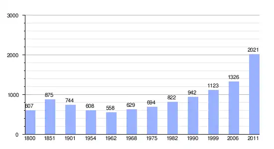 Los datos demográficos contemplados en este gráfico de la comuna de Saint-Germain-sur-l'Arbresle[5] se han cogido de 1800 a 2006 de la página francesa EHESS/Cassini.