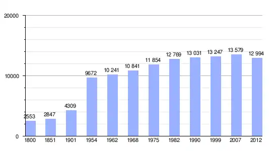 | Gráfica de evolución demográfica de San Juan de Luz entre 1800 y 2012 |