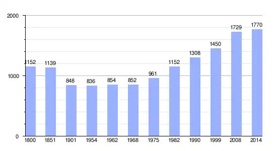 Los datos demográficos contemplados en este gráfico de la comuna de Saint-Jean-des-Mauvrets[4] se han cogido de 1800 a 1999 de la página francesa EHESS/Cassini, y los demás datos de la página del INSEE.[5]