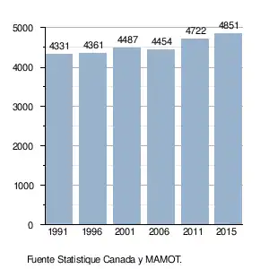 b. Statistique Canada, Profils des communautés de 2001 : Saint-Joseph-de-Beauce, Ottawa. 01/02/07. Consultado el 16 de febrero de 2015. (en francés)