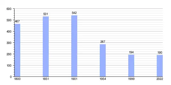 | Gráfica de evolución demográfica de Saint-Launeuc entre 1800 y 2022 |