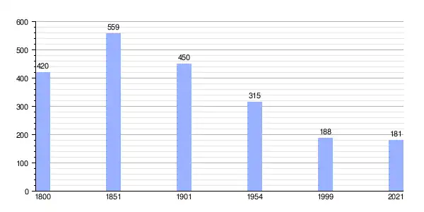 | Gráfica de evolución demográfica de Saint-Laurent-des-Mortiers entre 1800 y 2021 |