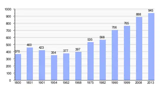 Los datos demográficos contemplados en este gráfico de la comuna de Saint-Laurent-sur-Manoire[4] se han cogido de 1800 a 1999 de la página francesa EHESS/Cassini, y los demás datos de la página del INSEE.[5]