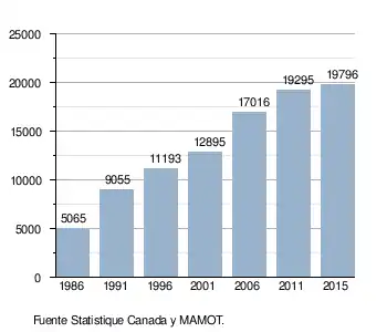 b. Statistique Canada, Profils des communautés de 2001 : Saint-Lazare, Ottawa. 01/02/07. Consultado el 5 de julio de 2015. (en francés)