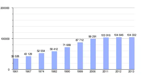 | Gráfica de evolución demográfica de Saint-Paul (Reunión) entre 1961 y 2013 |
