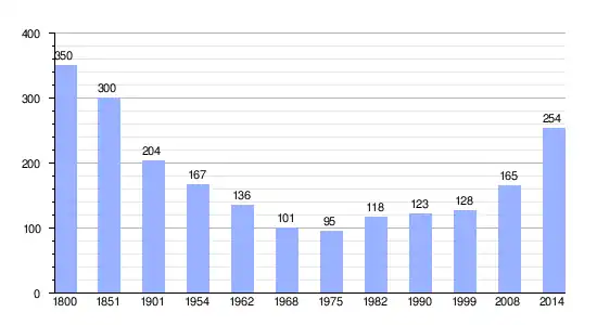 | Gráfica de evolución demográfica de Saint-Pierre-Lavis entre 1800 y 2014 |