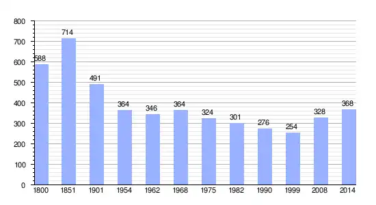 | Gráfica de evolución demográfica de Saint-Pierre-Tarentaine entre 1800 y 2014 |