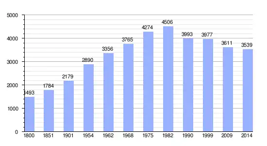 Los datos demográficos contemplados en este gráfico de la comuna de Saint-Pierre-sur-Dives[4] se han cogido de 1800 a 1999 de la página francesa EHESS/Cassini, y los demás datos de la página del INSEE.[5]