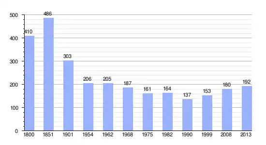 | Gráfica de evolución demográfica de Saint-Romain-le-Preux entre 1800 y 2013 |