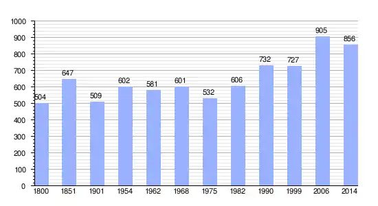 Los datos demográficos contemplados en este gráfico de la comuna de Saint-Samson-de-Bonfossé[4] se han cogido de 1800 a 1999 de la página francesa EHESS/Cassini, y los demás datos de la página del INSEE.[5]