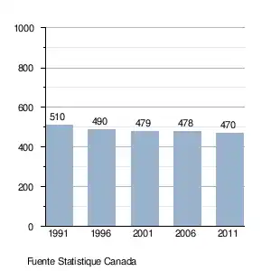 b. Statistique Canada, Profils des communautés de 2001 : Saint-Valentin, Ottawa. 01/02/07. Consultado el 27 de junio de 2014. (en francés)