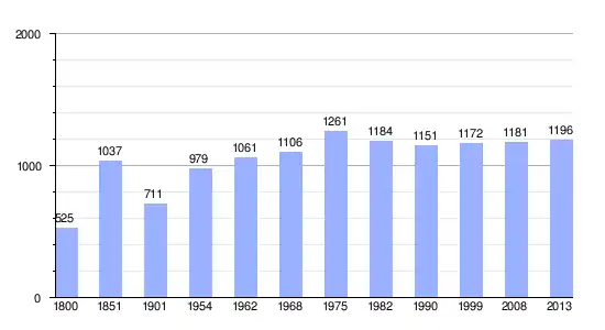 Los datos demográficos contemplados en este gráfico de la comuna de Saint-Wandrille-Rançon[4] se han cogido de 1800 a 1999 de la página francesa EHESS/Cassini, y los demás datos de la página del INSEE.[5]