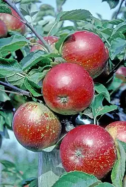 - ↑ Hampson, Cheryl R.; Kemp, Henk (2003). Apples. Botany, Production and Uses, ed. Characteristics of Important Commercial Apple Cultivars. CABI Publishing. pp. 62. ISBN 0-85199-592-6.