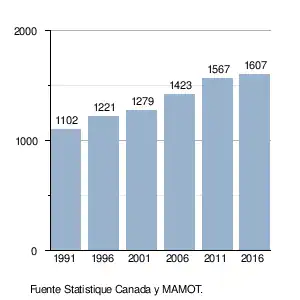 b. Statistique Canada, Profils des communautés de 2001 : Sainte-Marcelline-de-Kildare (municipalité), Ottawa. 01/02/07. Consultado el 24 de febrero de 2016. (en francés)