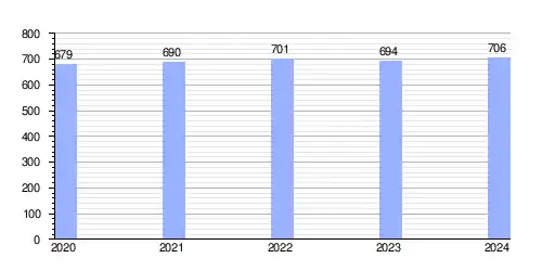 | Gráfica de evolución demográfica de Sajópálfala entre 2020 y 2024 |
