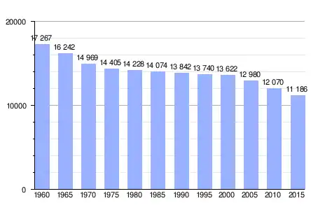 | Gráfica de evolución demográfica de Sakuho entre 1960 y 2015 |