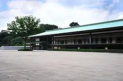 Los miembros de la familia imperial japonesa están detrás de un vidrio a prueba de balas en la varanda del Salón de Recepciones de Chōwaden cuando se presentan ante el público. Es costumbre que el emperador se dirija a las personas que se reúnen en la Plaza Kyūden Tōtei frente al edificio el 2 de enero (el día después del Día de Año Nuevo) y el 23 de diciembre (cumpleaños del Emperador Akihito) de cada año. Las multitudes a menudo se pueden ver ondeando banderas japonesas y gritando "banzai", o "larga vida" en japonés, en tales ocasiones.