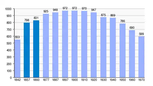 | Gráfica de evolución demográfica de Salamón[2] entre 1842 y 1970 |