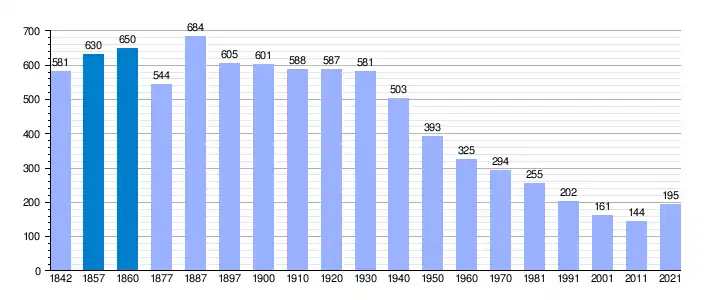 | Gráfica de evolución demográfica de Salas Bajas[3] entre 1842 y 2021 |