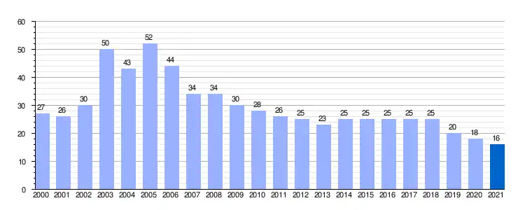 | Gráfica de evolución demográfica de Salcedillo entre 2000 y 2021 |