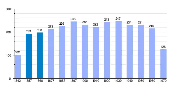 | Gráfica de evolución demográfica de Saldaña de Ayllón[7] entre 1842 y 1970 |