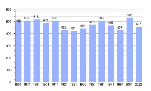 | Gráfica de evolución demográfica de Salerano Canavese entre 1861 y 2022 |
