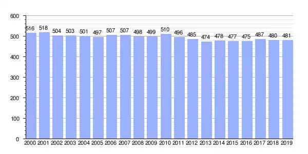 | Gráfica de evolución demográfica de Sales (aldea) entre 2000 y 2019 |