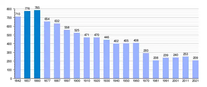 | Gráfica de evolución demográfica de Salinas de Léniz[10] entre 1842 y 2021 |