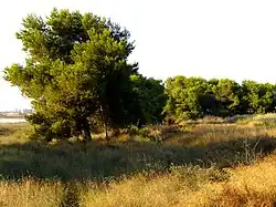 Al sur de la laguna de la Mata existe una zona con vegetación típica mediterránea como el coscojar (Quercus coccifera), el pino carrasco (Pinus halepensis), el tomillo, el albardín (Lygeum spartum) y una pinada de repoblación de pino piñonero (Pinus pinea), pino carrasco (Pinus halepensis) y eucaliptos (Eucalyptus gomphocephala).[6]